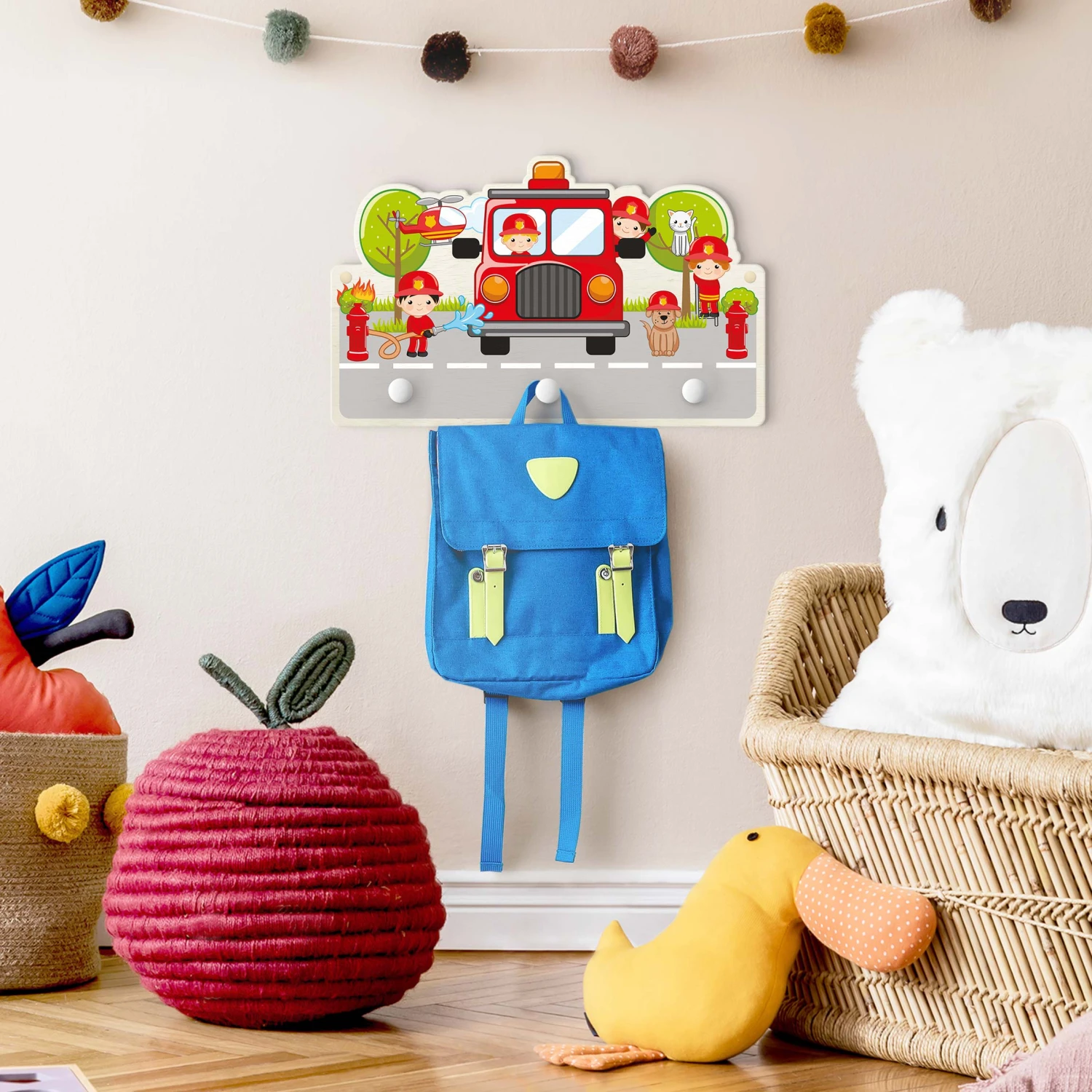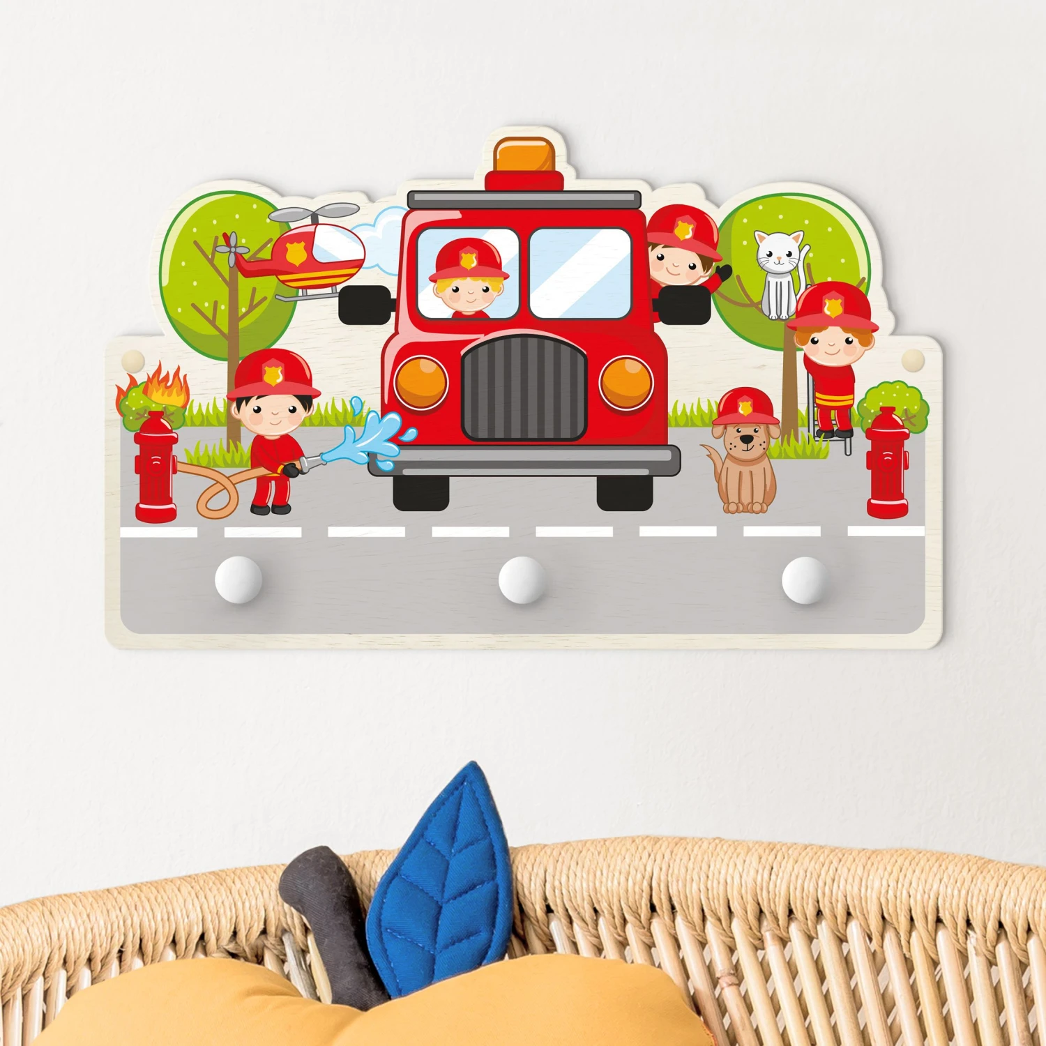 Kindergarderobe Holz – Feuerwehr Im Einsatz In Rot