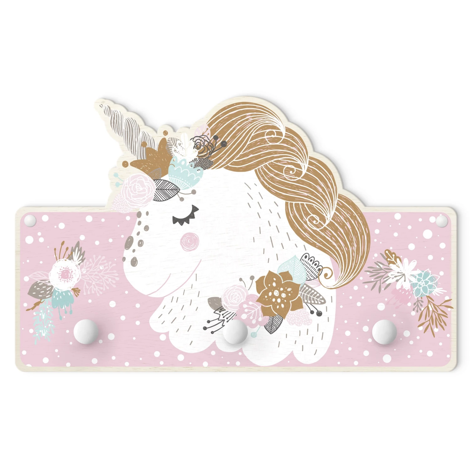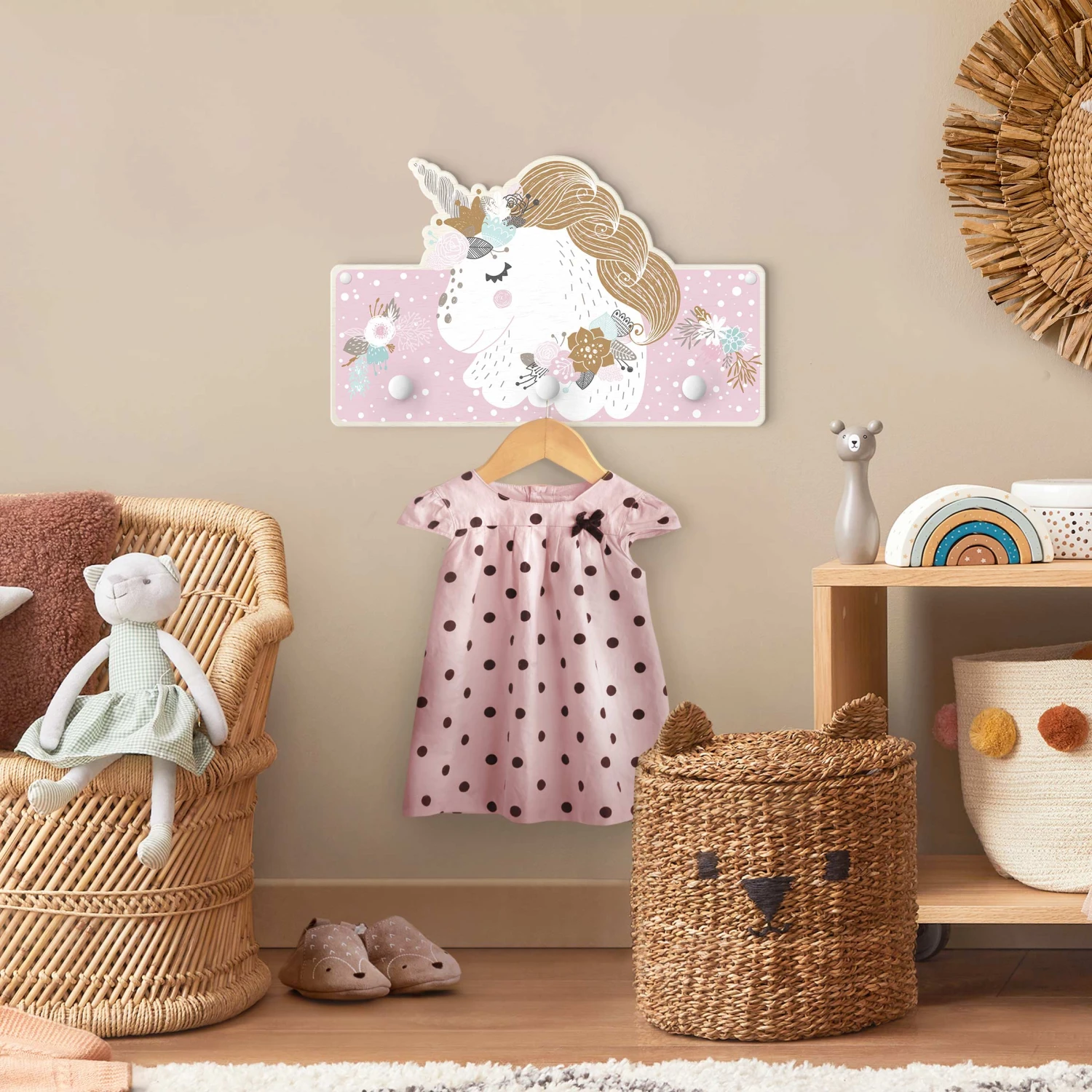 Kindergarderobe Holz – Florales Einhorn Rosa In Rosa