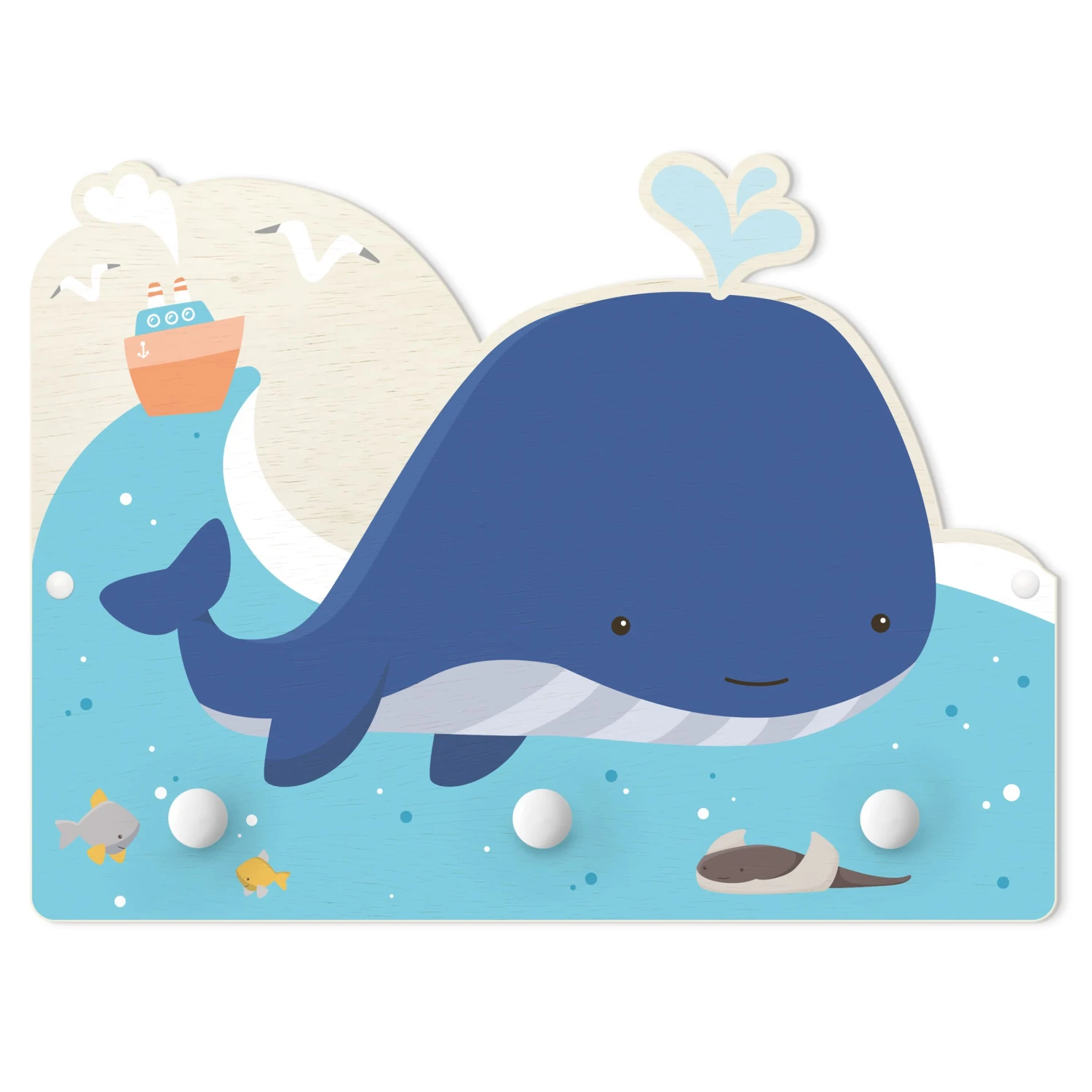 Kindergarderobe Holz – Freundlicher Wal Im Meer In Blau