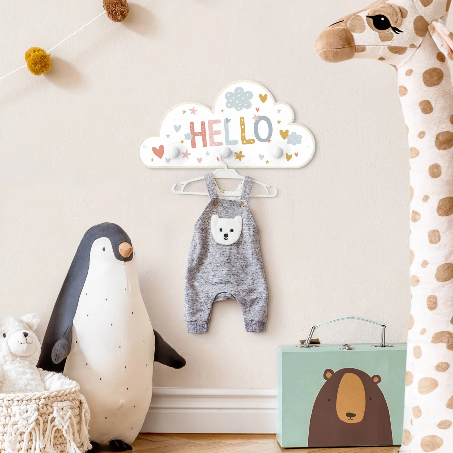 Kindergarderobe Holz – Hello – Herzen Sterne Wolken In Bunt