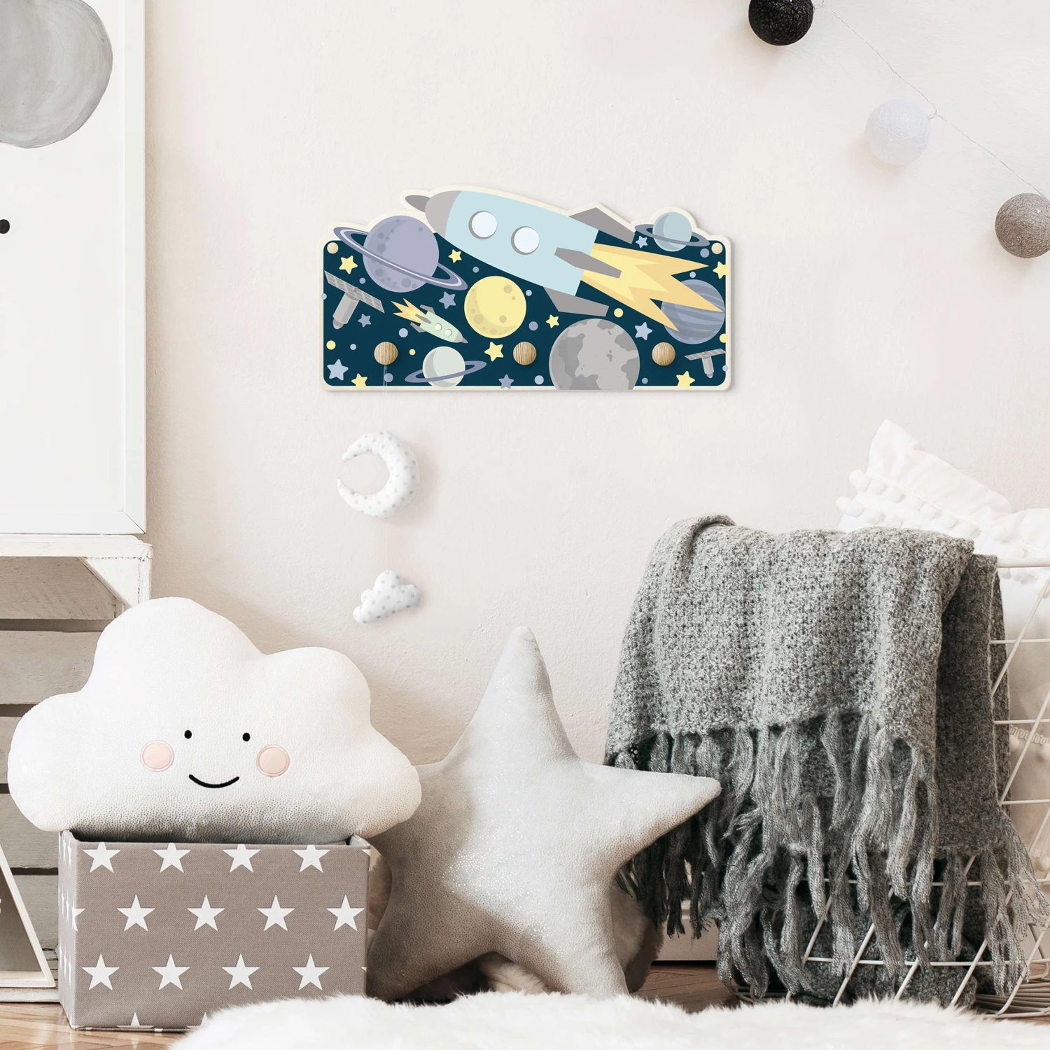Kindergarderobe Holz – Rakete Und Planeten In Blau