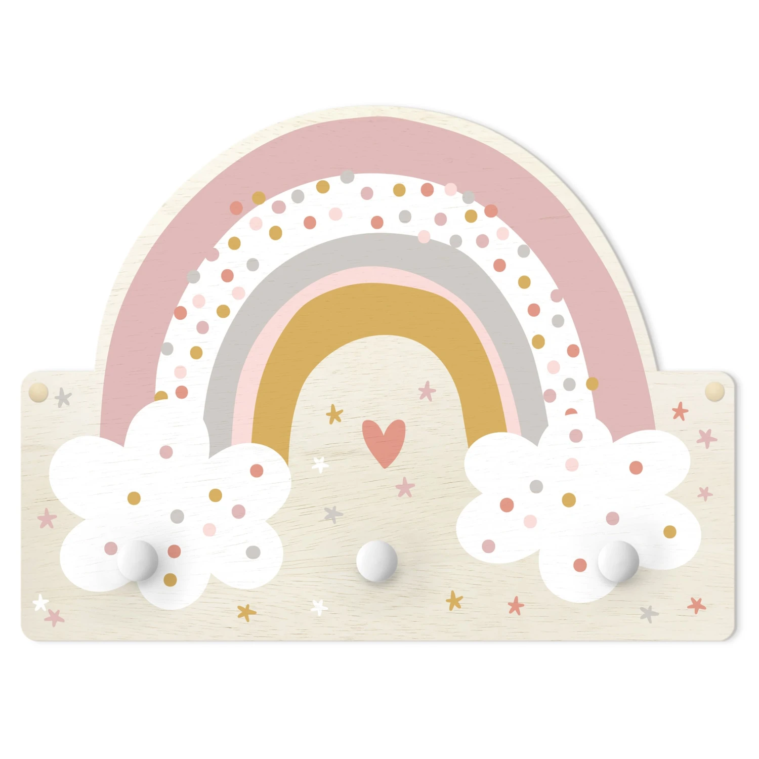 Kindergarderobe Holz – Regenbogen Mit Wolken Rosa In Rosa