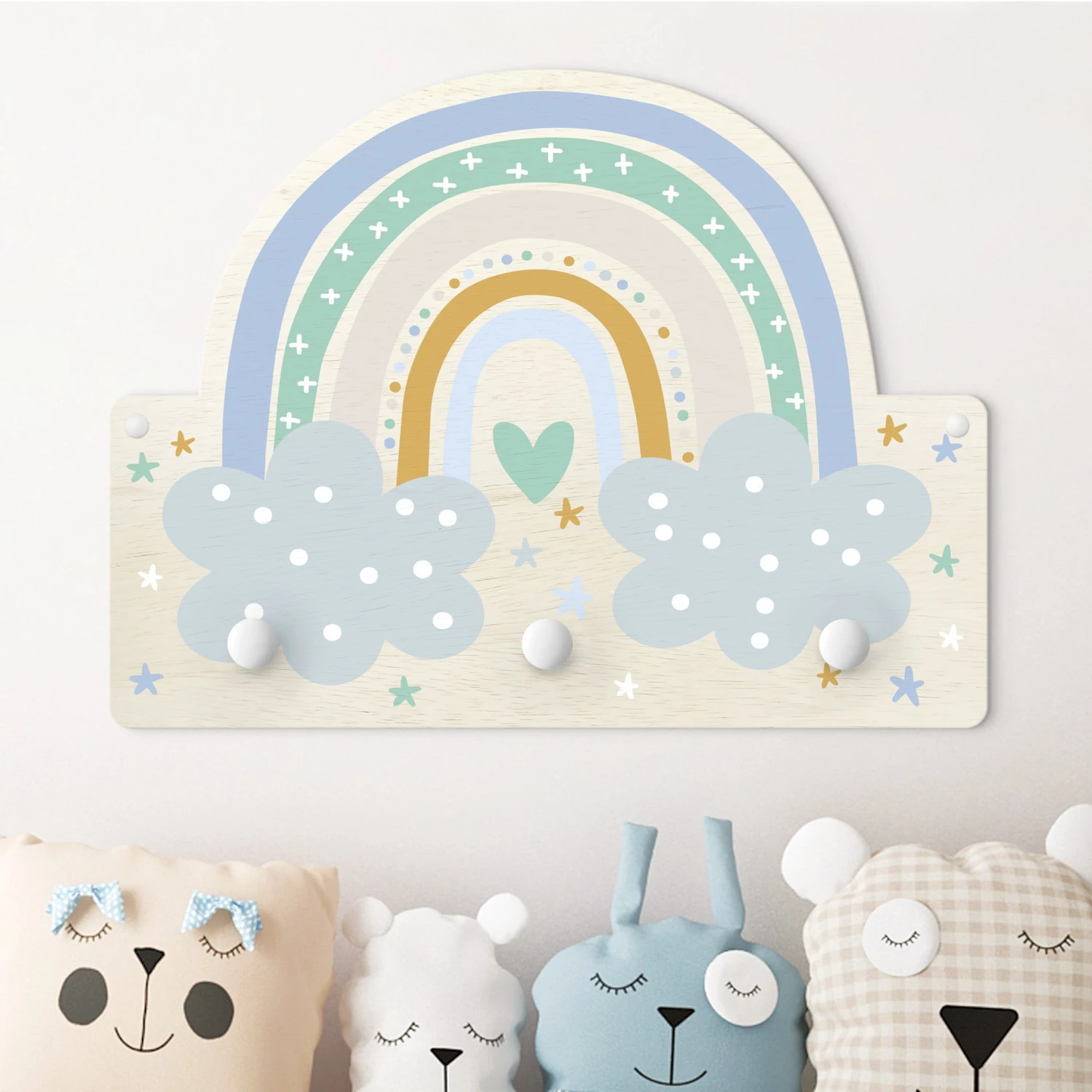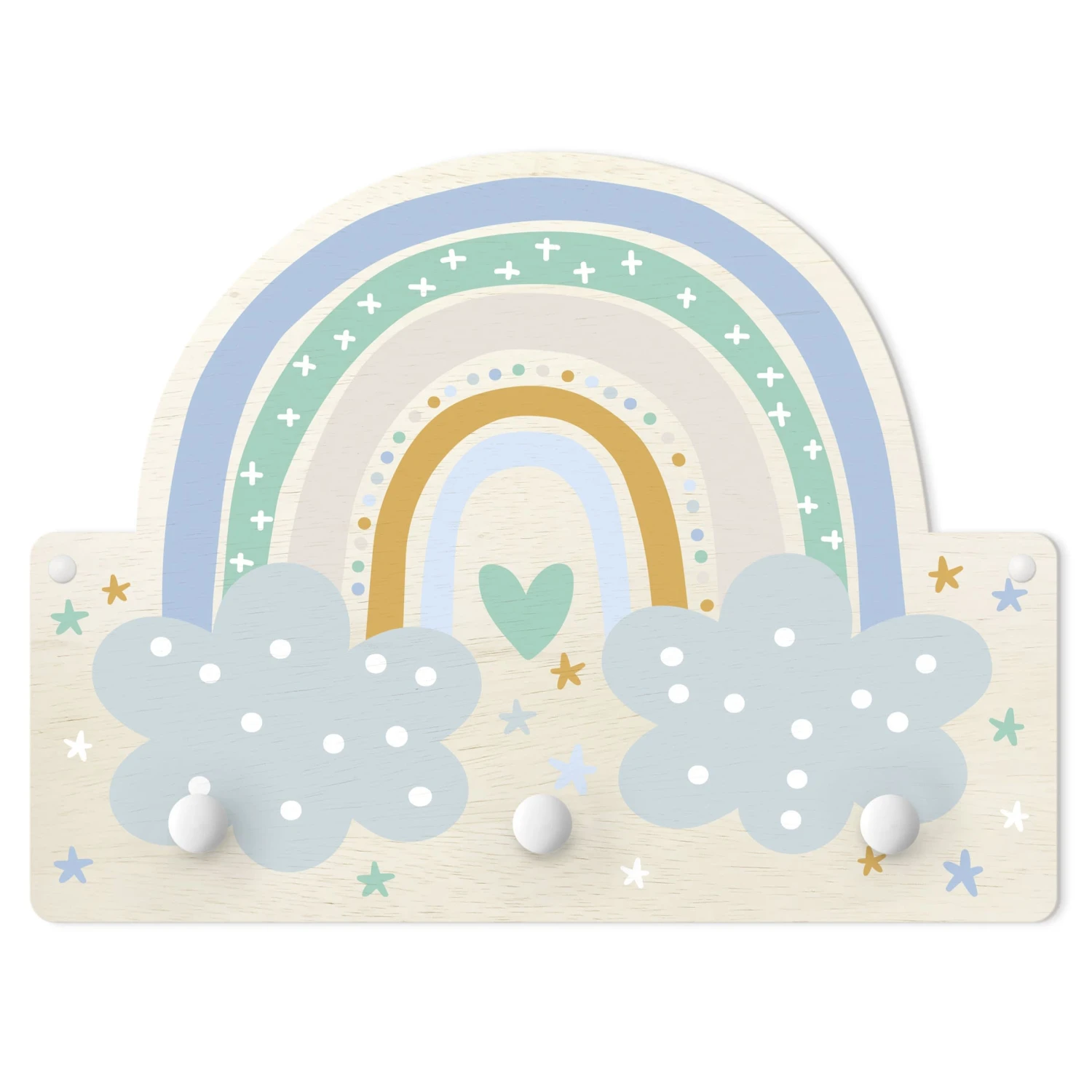 Kindergarderobe Holz – Regenbogen Mit Wolken Türkis In Pastell