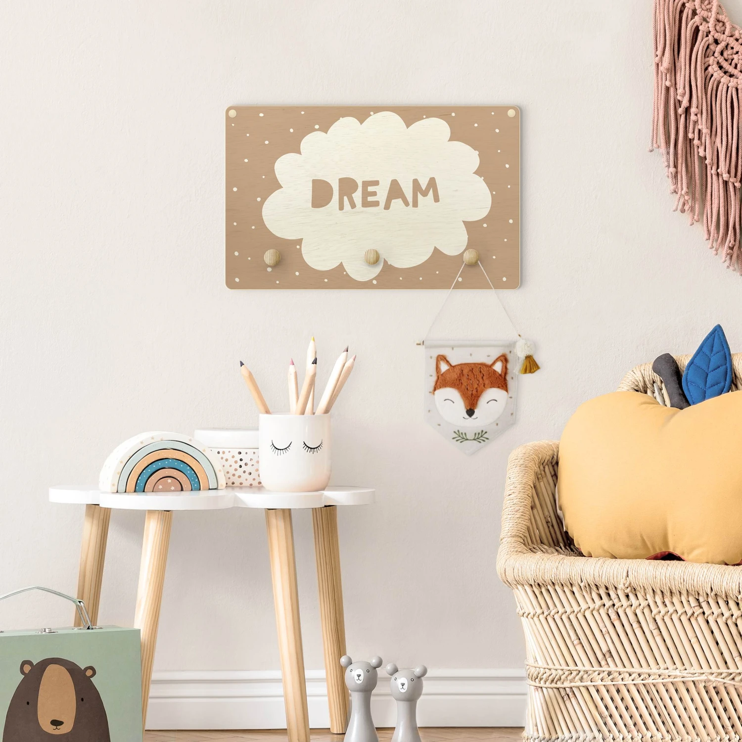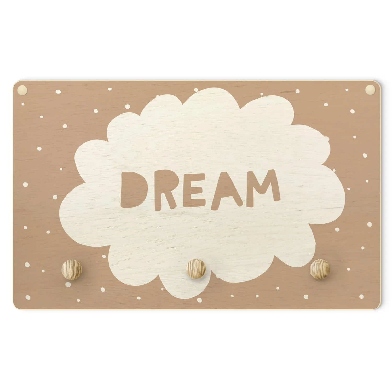 Kindergarderobe Holz – Spruch Dream Mit Wolke Natur In Creme-Beige
