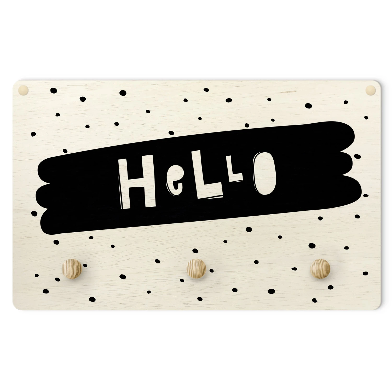 Kindergarderobe Holz – Spruch Hello Auf Pinselstrich Schwarz In Schwarz